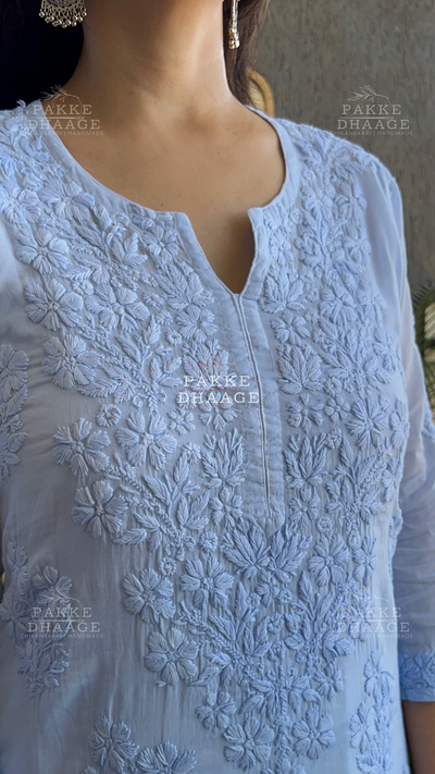 ChikankariArya Pure Cotton Chikankari Gown Powder Blue