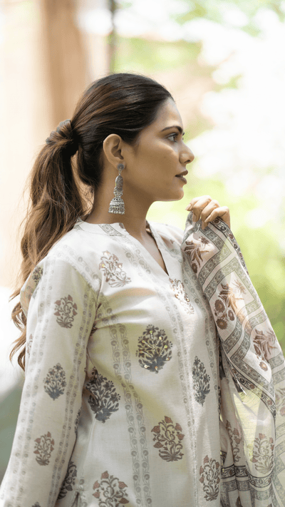 ChikankariNazm Pure Kota Doria Anarkali - White