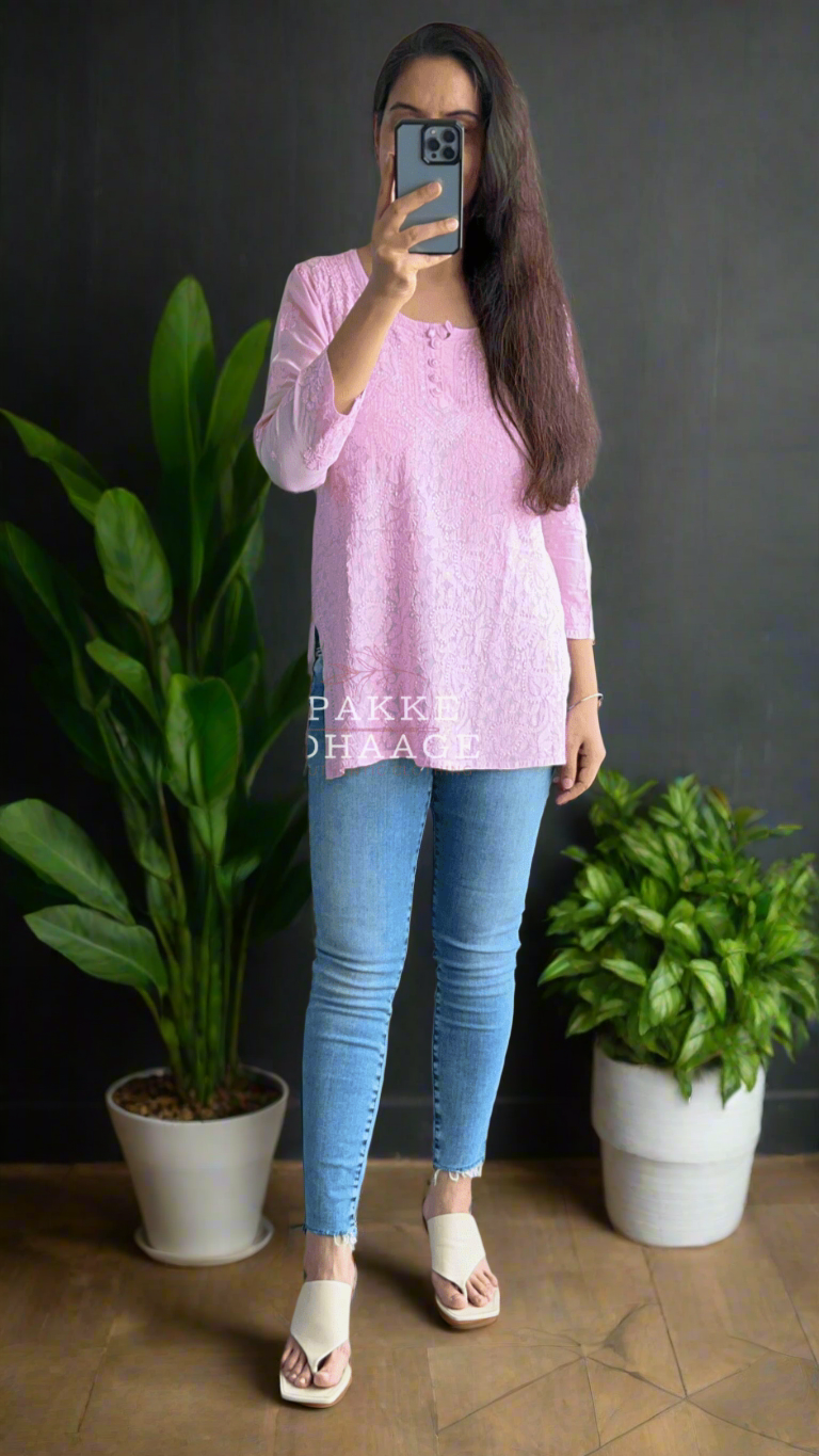 Crafted from the finest muslin fabric, this short Kurti creates a graceful, flowing silhouette that provides a graceful drape. Its refined look will make you a standout. A must-have for the fashion connoisseur.