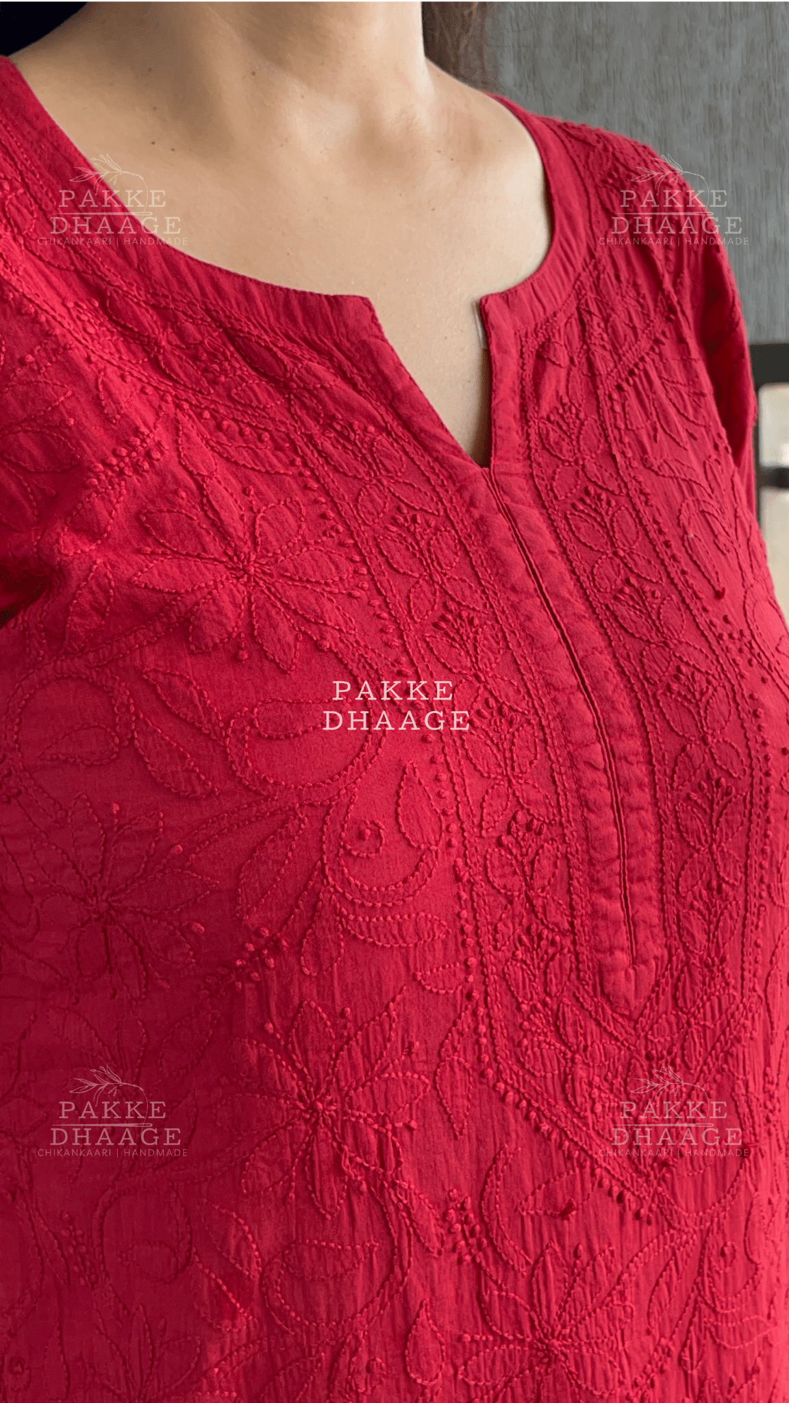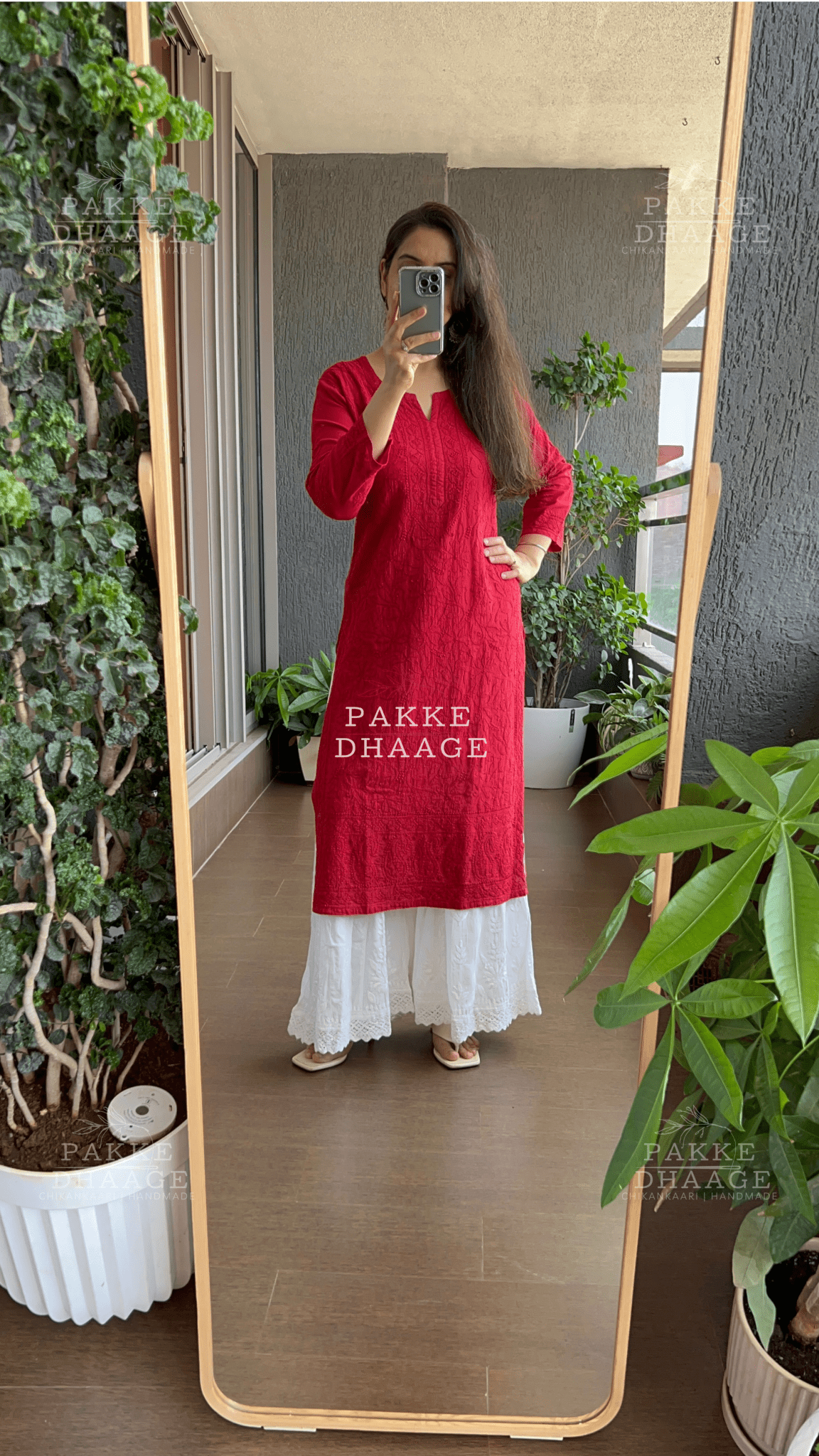 Fiza Pure Mulmul Cotton Kurta - Candy Apple Red
