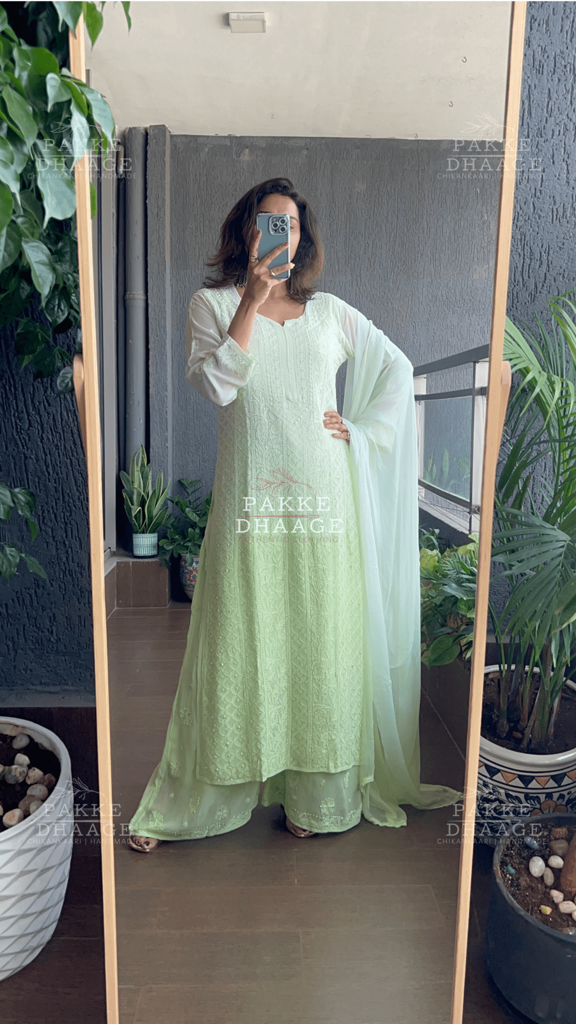 Roohani Georgette Kurta & Kurta Sets - Ombre Shadow Lime