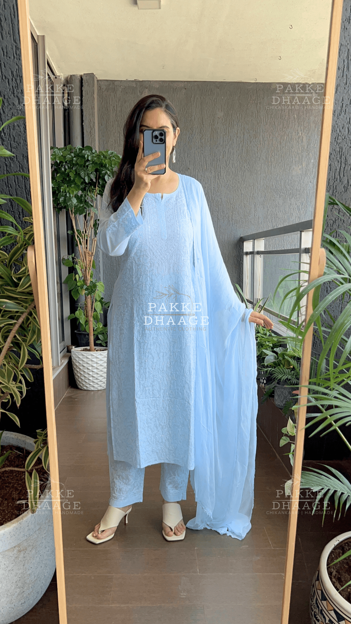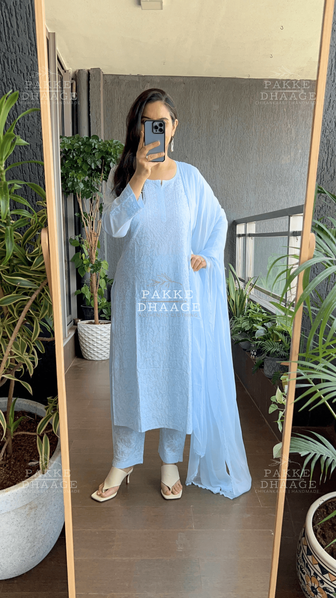 Inayat Resham Dhaaga Mulmul Kurta & Kurta Sets - Baby Blue