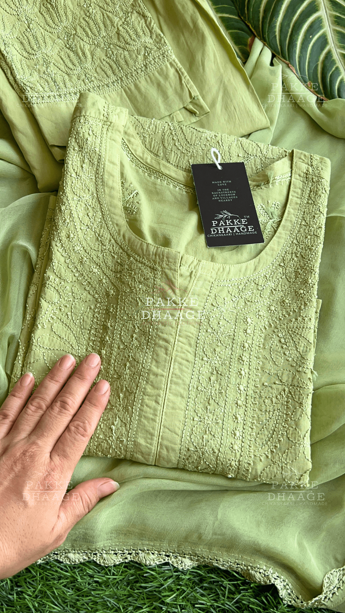 Inayat Resham Dhaaga Mulmul Kurta & Kurta Sets - Sage Green