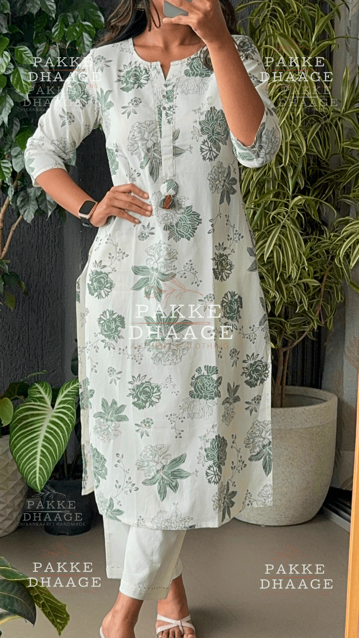 Soft Olive Pure Cotton Jaipuri Printed Kurta Pant Set
