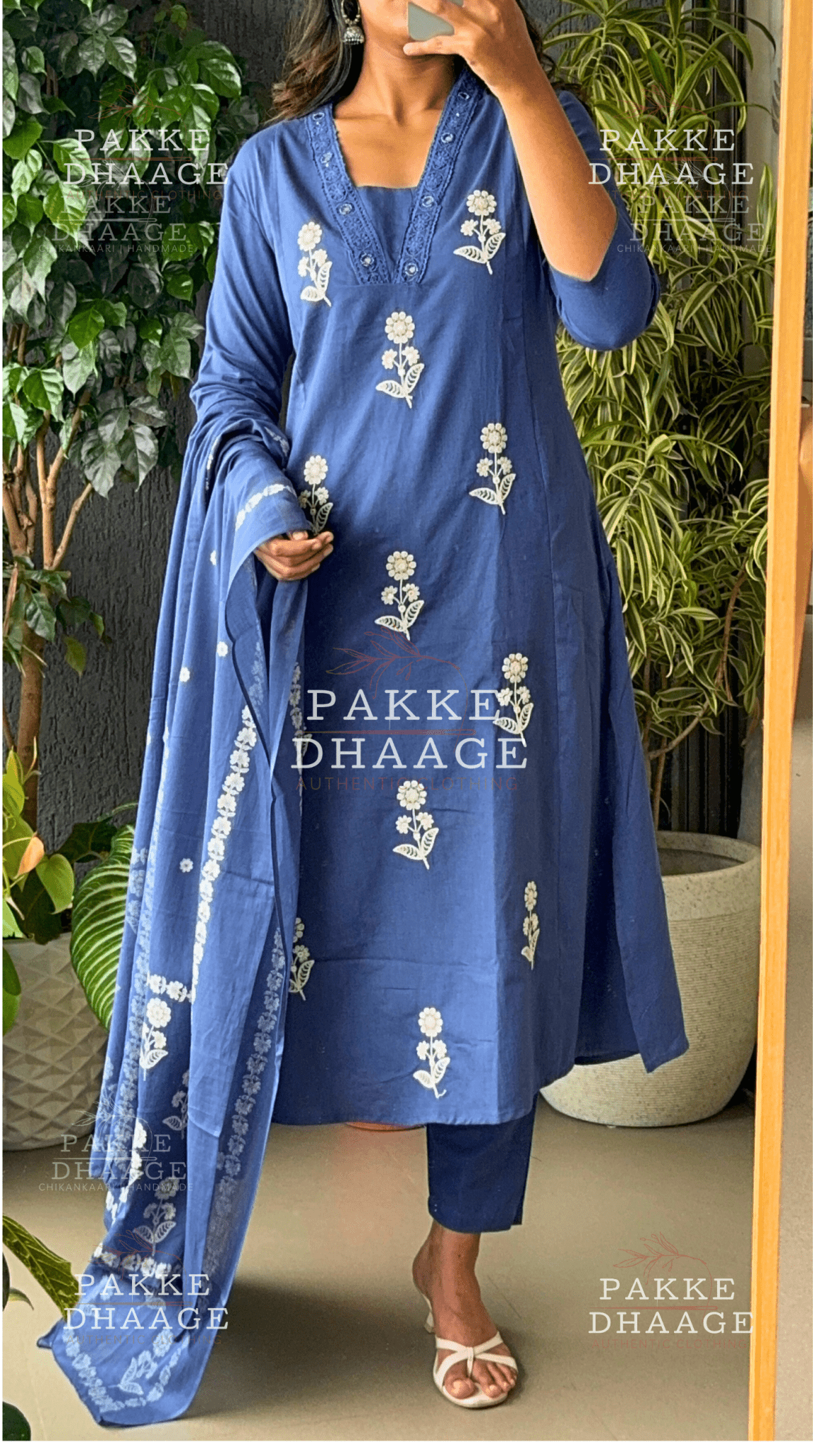 3-pc machine-embroidered suit sets, with a printed dupatta - precise needle-work celebrating a minimalist restraint. Set on comfortable cloth to make them the perfect all-day wear. Brilliant for office-wear, adaptable for occasions