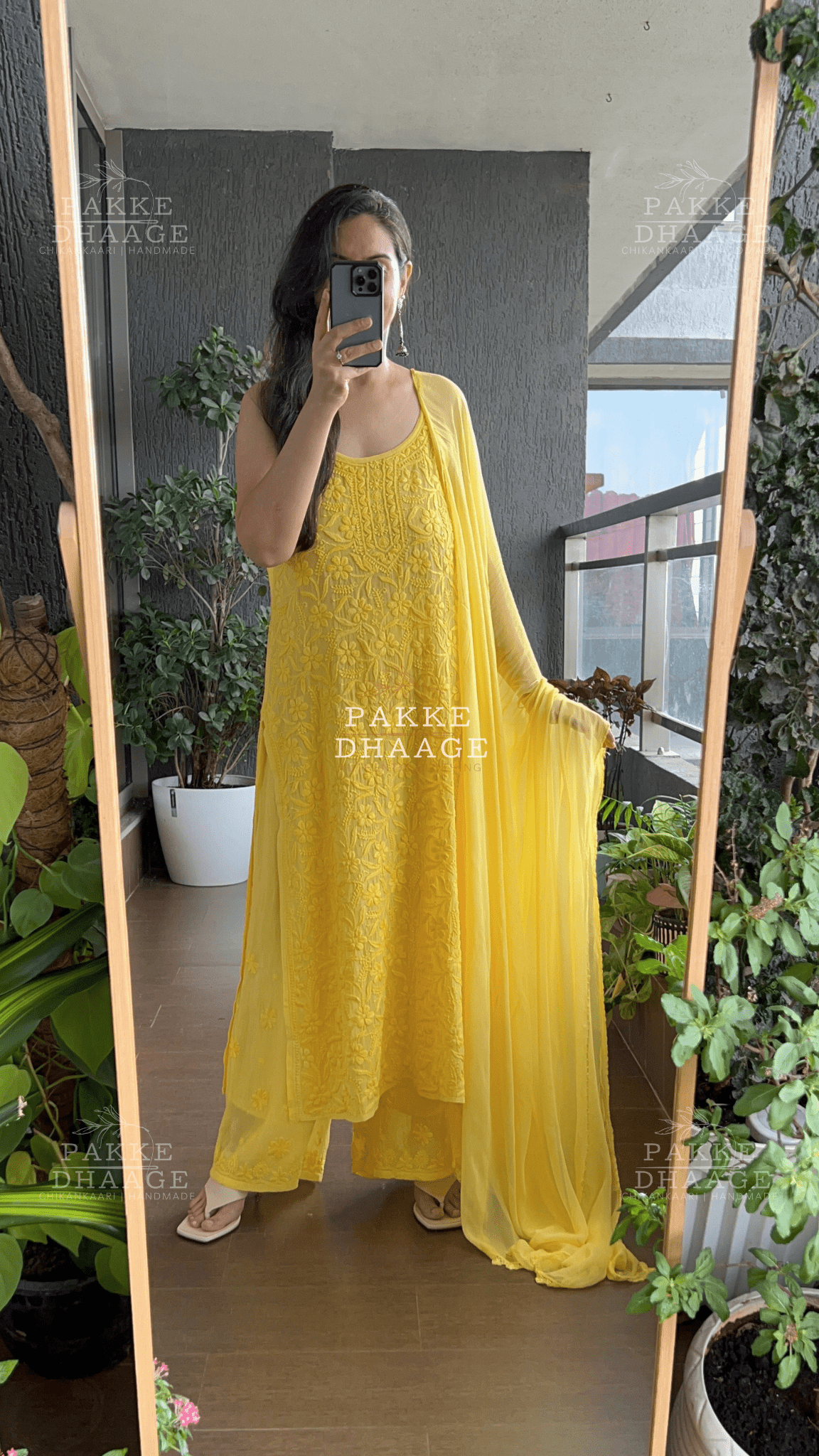 Noor Viscose Georgette Strappy Kurta & Kurta Sets - Vibrant Yellow