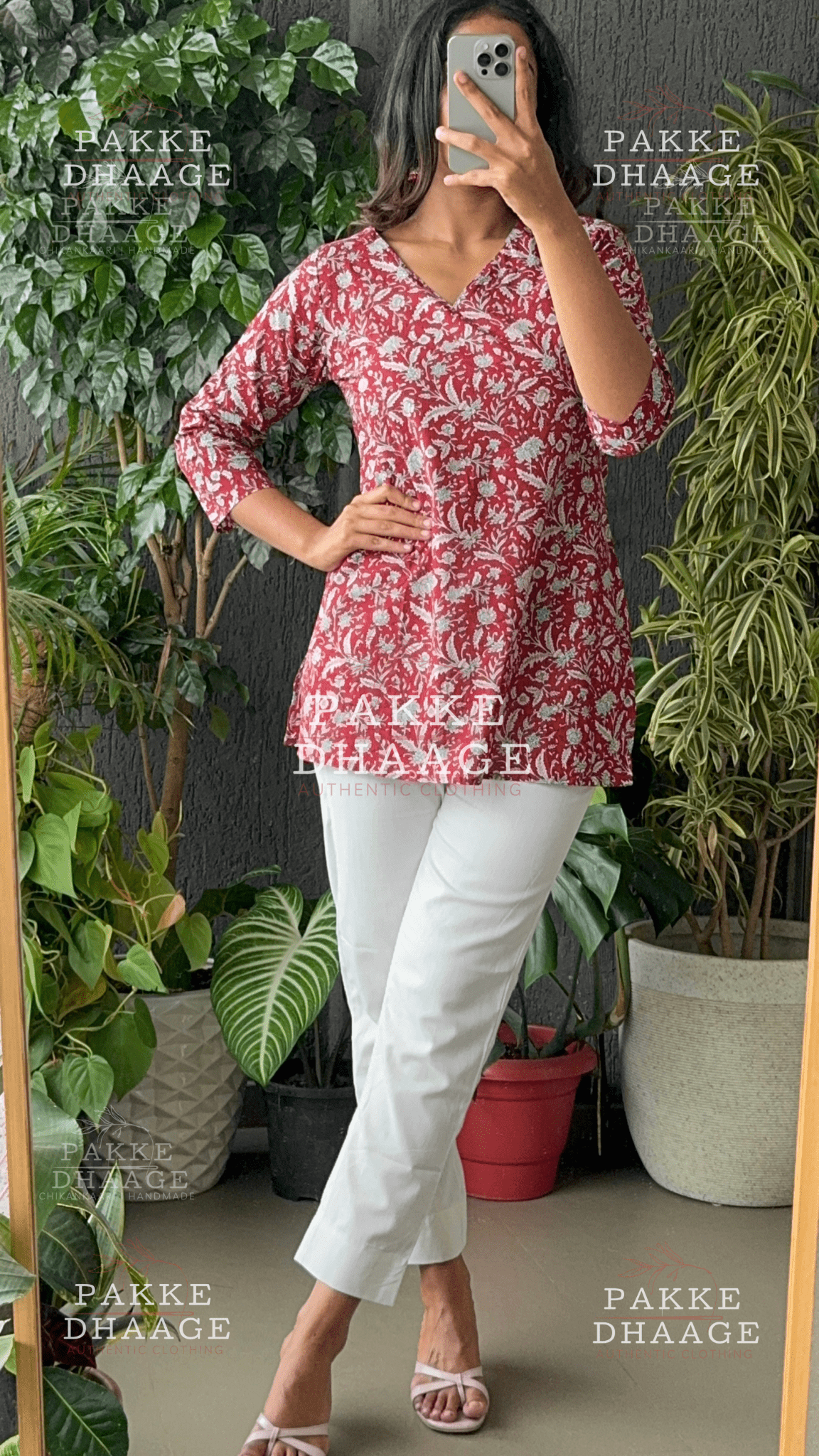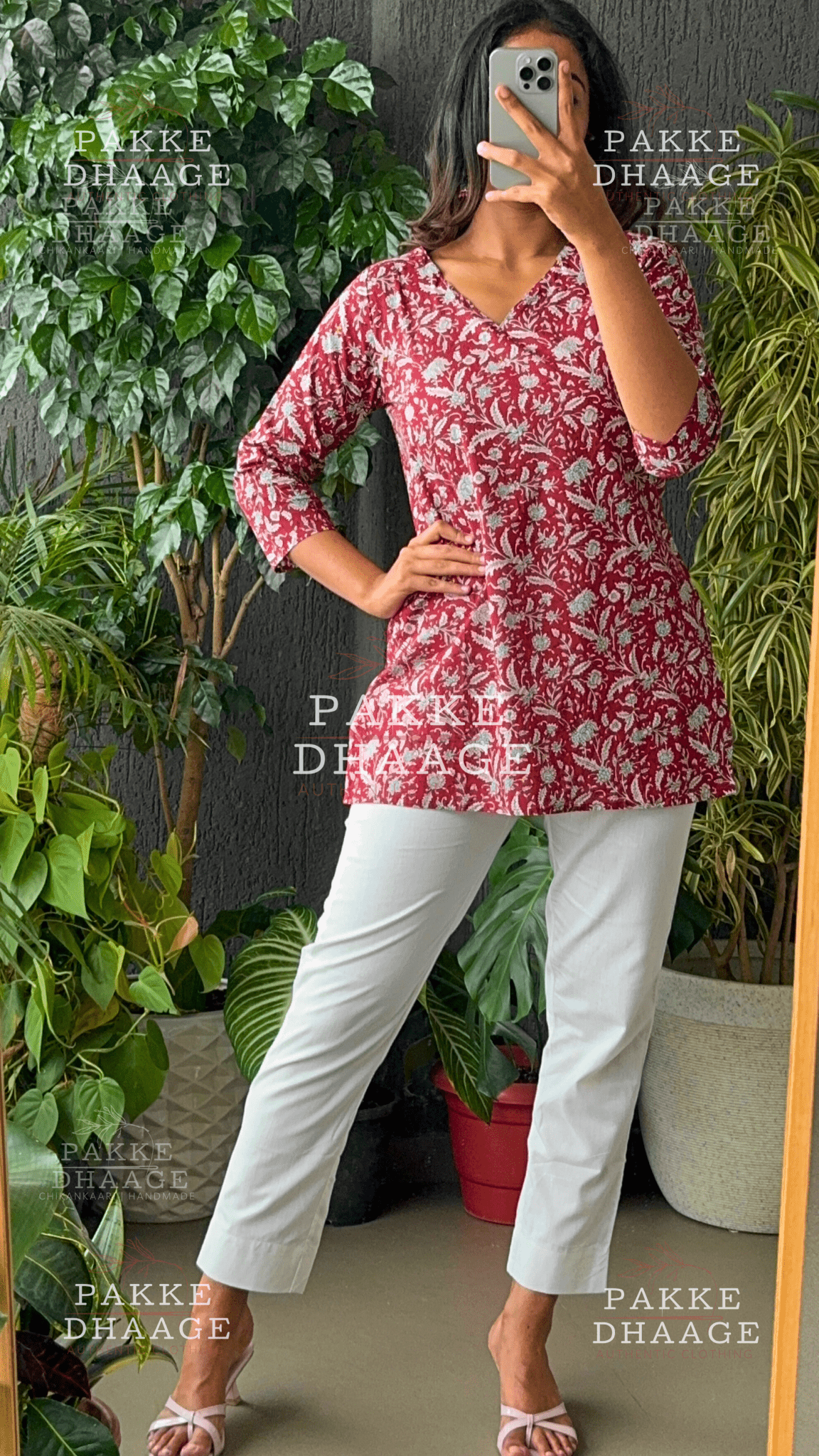 Pakke Dhaage Print Poetry Short Kurti Collection, designed for casual comfort wearing. Stylish and trendy prints go with pants & jeans - and work in both office and casual settings.