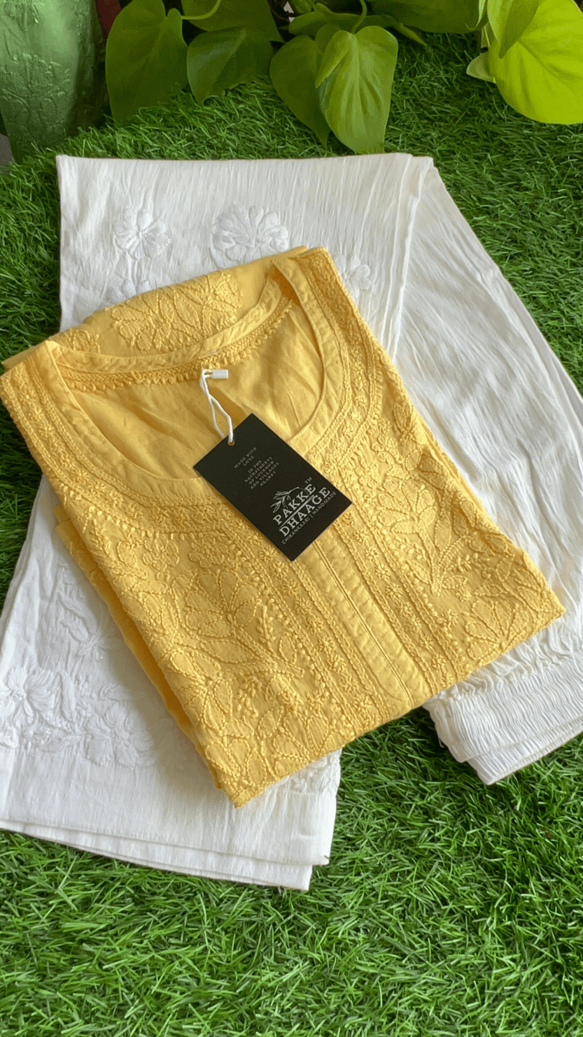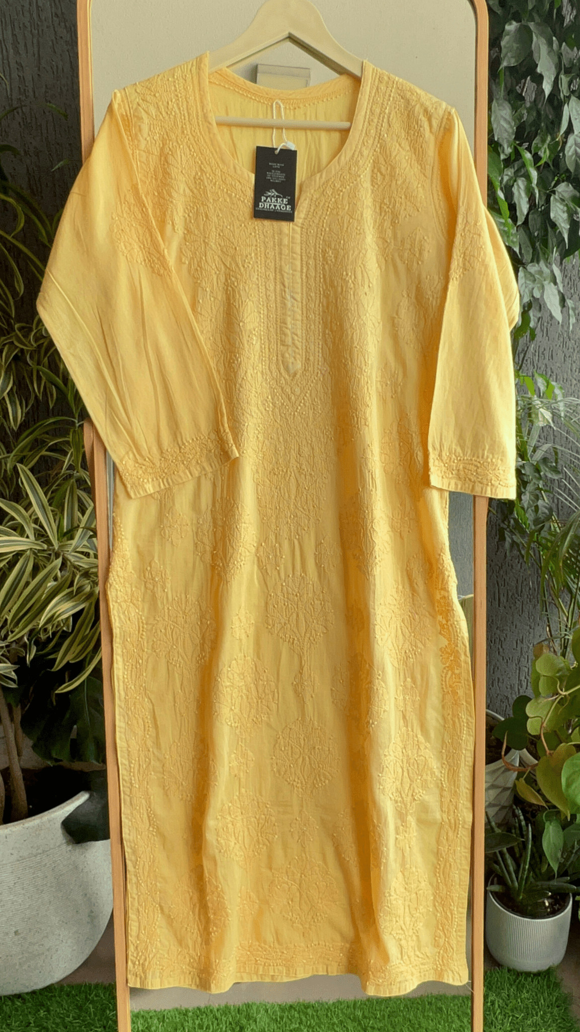 Zarah Pure Mulmul Chikankari Kurta - Yellow